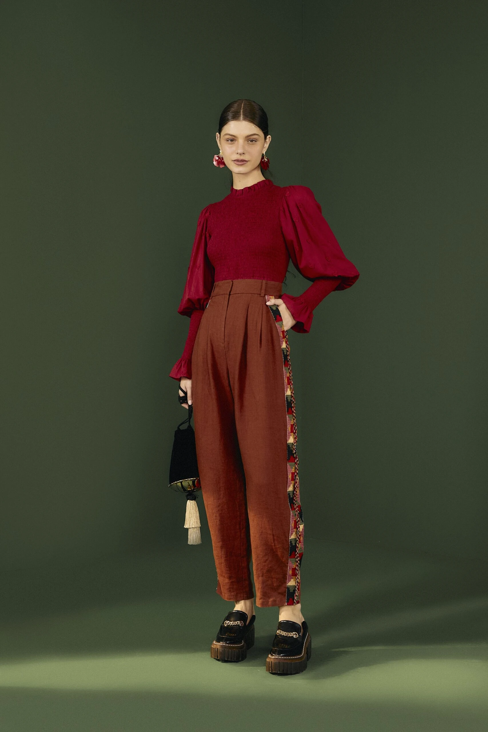 A basic-but-bold way to get through any season (or situation!). The Burgundy 3D Hearts Blouse has a body-hugging silhouette with cute heart appliques, ruffles, and standout sleeves to level up your outfit’s mood. From printed and solid bottoms to warm shoes, your new fave blouse matches them all <3