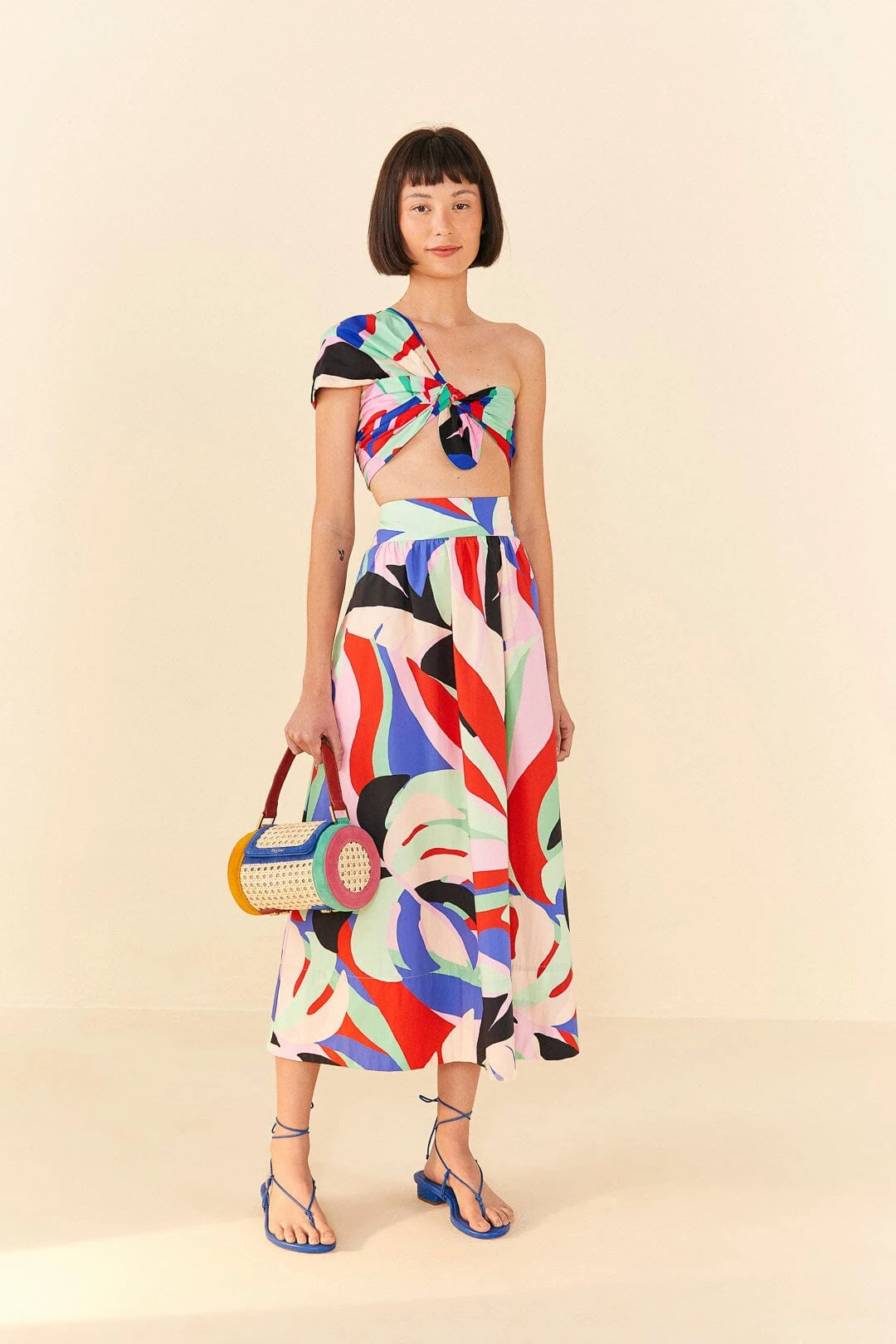 A fave that suits all nature-lover tastes, whatever the season, whatever the plan! The Colorful Monstera Organic Cotton Crop Top is here bringing that fresh vibe you’ve been craving about. It features a body-hugging silhouette with a WOW front knot to show the skin that’s missing the sun. So you just have to invite colorful bottoms (have you seen the Colorful Monstera Midi Skirt? A WOW match!) to complete your solar look <3