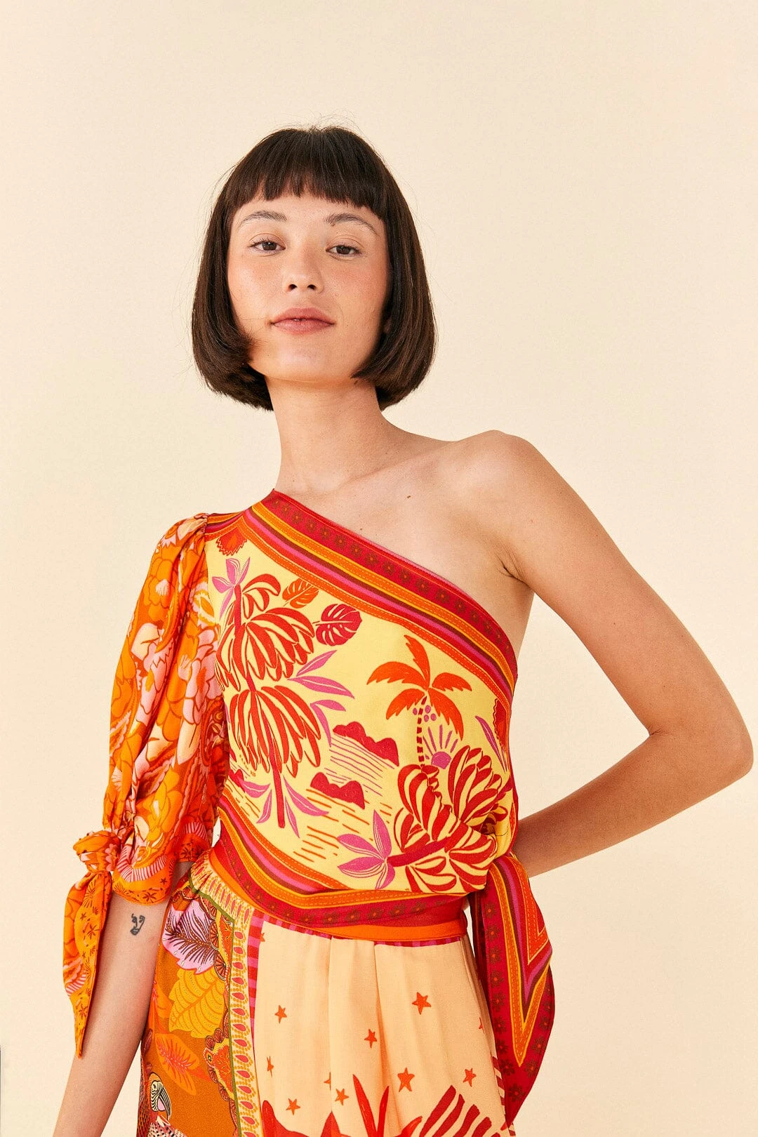 A boredom-free fave to evoke joy everywhere! The Forest Mixed Scarves Lenzing™ Ecovero™ Viscose Crop Top is not just a match to your bottoms but a piece to enjoy the sun all season long while (finally!) showing some skin. It has a fresh fit with a one-shoulder neckline and ties, and the Forest Mixed Scarves Lenzing™ Ecovero™ Viscose Pants are waiting to hang out with you and your fave top <3
