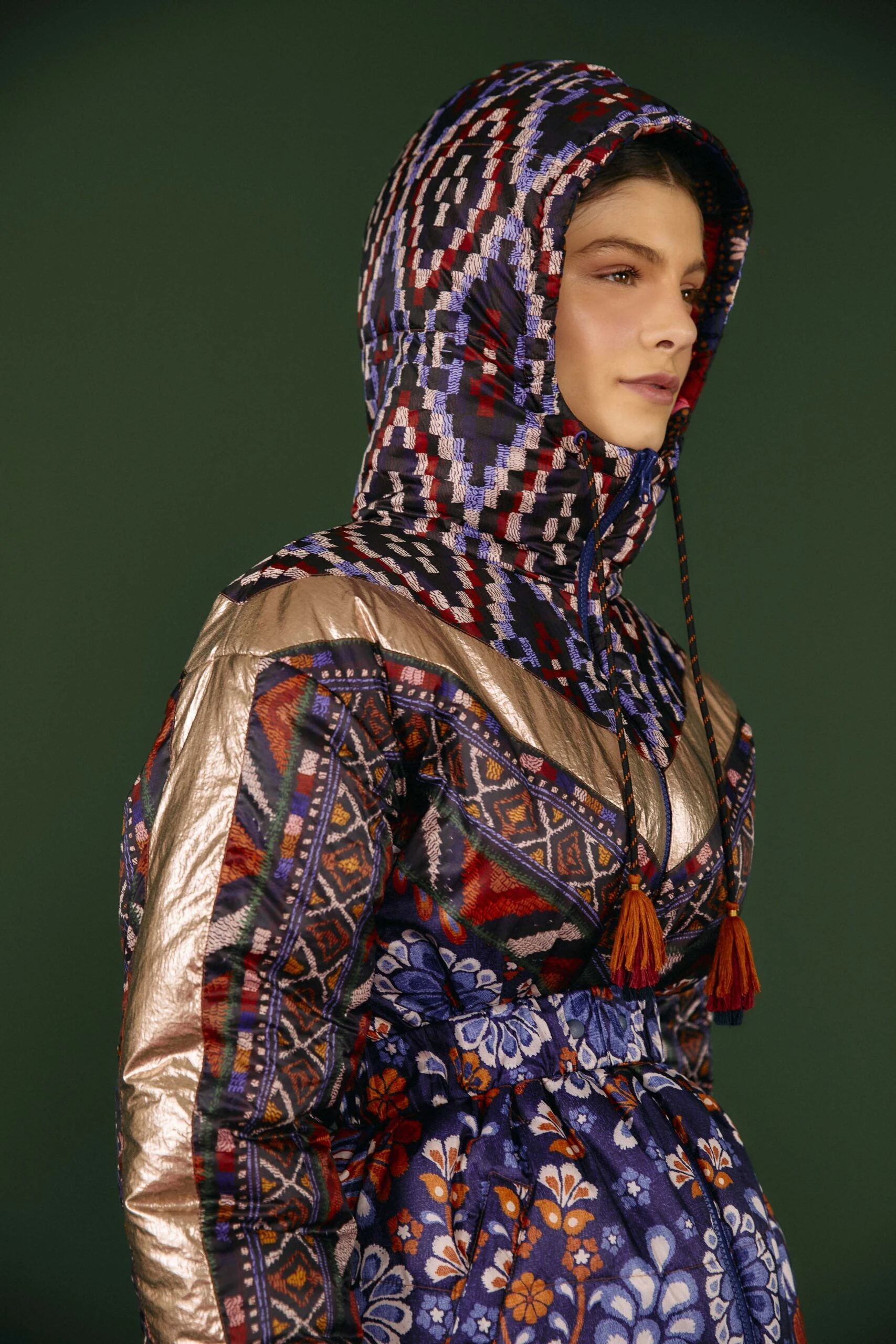 You found two jaw-dropping faves in just one piece! The Navy Pineapple Flowers Recycled Polyester Puffer Jacket is a versatile pick to match any outfit you have in mind. Everybody loves our puffer jackets because they’re like a warm hug, and this one also brings a standout belt and a hoodie with ties and tassels <3
