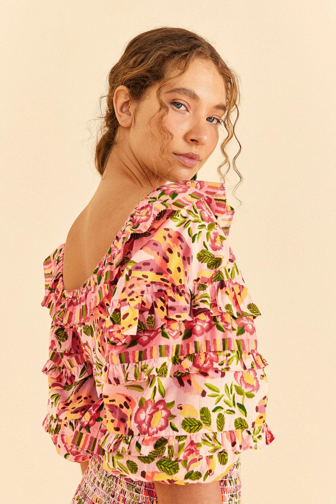It’s your time to sun-shine in a flavorful way! The Pink Painted Bananas Top is here to level up your plans with its one-of-a-kind silhouette and the most delicious print you could pick to dress in happiness all season long. Mix it with bottoms in the same print (like the Pink Painted Bananas Smocked Mini Skirt!) or make your own fruit salad matching your top with other fruity motifs. And don’t forget that your solar shoes and accessories are just waiting to join this look full of flavor <3