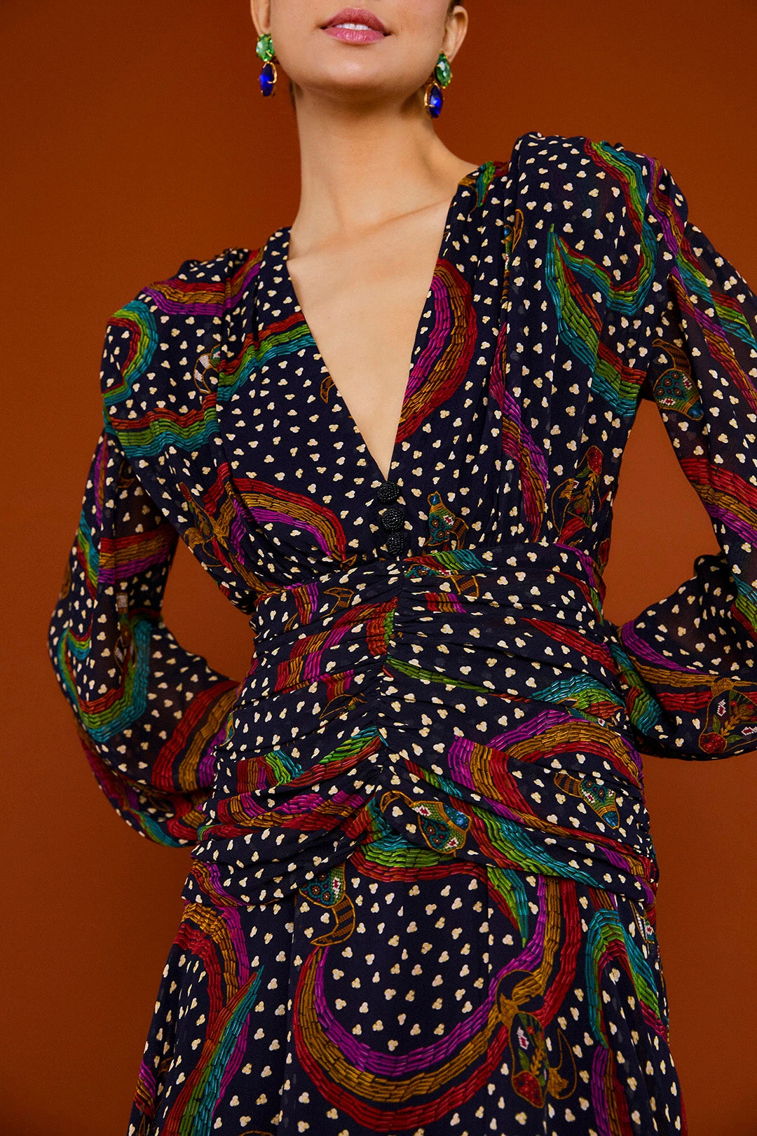 Nothing better than feeling elegant and comfy in the same fave! With the Rainbow Oxen Mini Dress, you have many reasons to dress up for your next work meeting, to celebrate special occasions, or to enjoy a well-deserved getaway. Feeling the cold breeze? Throw a cozy layer on, and also invite your warm shoes, from boots to loafers, to be confident from head to toe!