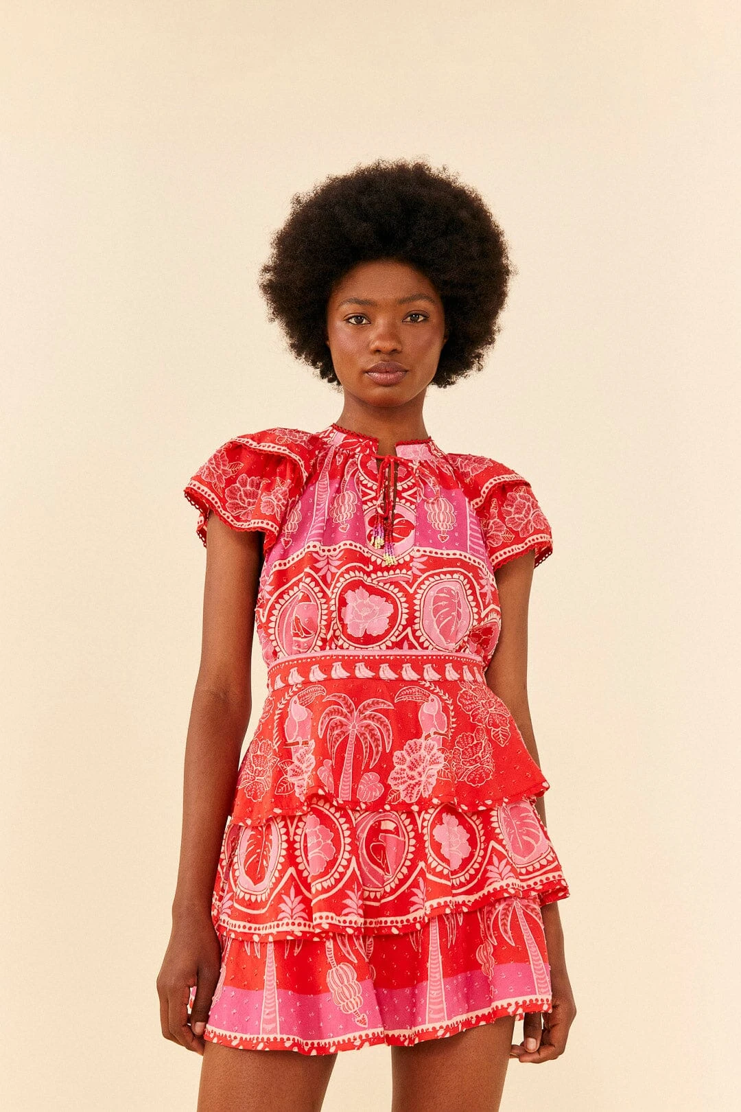 Meet your sun-filled fave to dress in happiness no matter what the forecast says. The Red Summer Sunrise Mini Skirt is here with its effortless layered silhouette in a print that matches all your plans. Speaking about that, your new bottom is also the perfect companion to the Red Summer Sunrise Blouse (and all the fresh tops you wanna invite to create a joyful combo!). Bring your sandals on and get ready to kick boredom out of your way all season long <3
