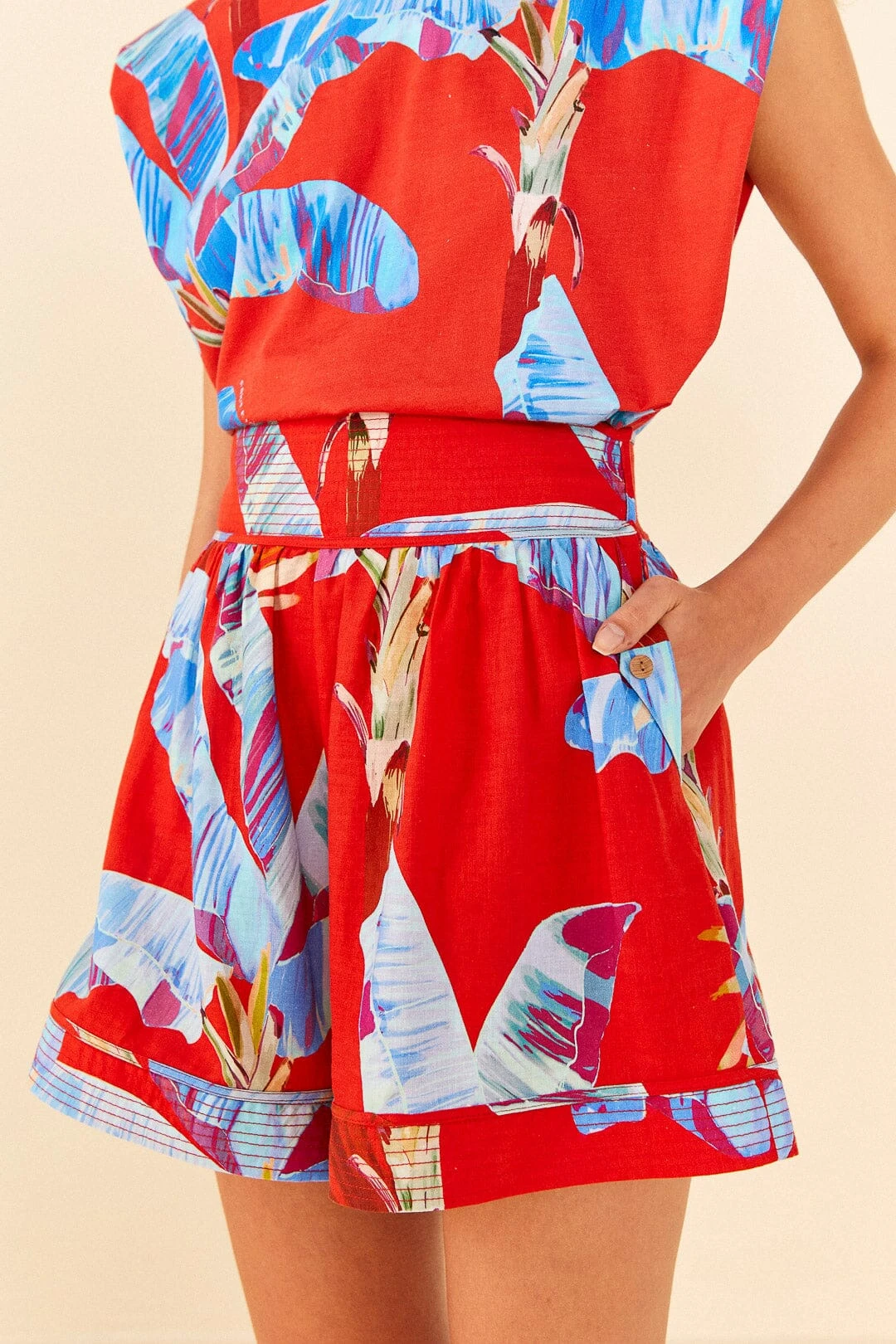 Get into a nature-inspired state of mind to prepare for sunny days ahead. The Red Sweet Jungle Organic Cotton Shorts is (literally!) a refresh for your wardrobe with an effortless silhouette, versatile pockets, and a length that gives your legs a little tan. It matches your cool tops, from blouses to tees (the Red Sweet Jungle Organic Cotton T-Shirt awaits!). So how about inviting some bold shoes to complete your solar look along with artisanal accessories?